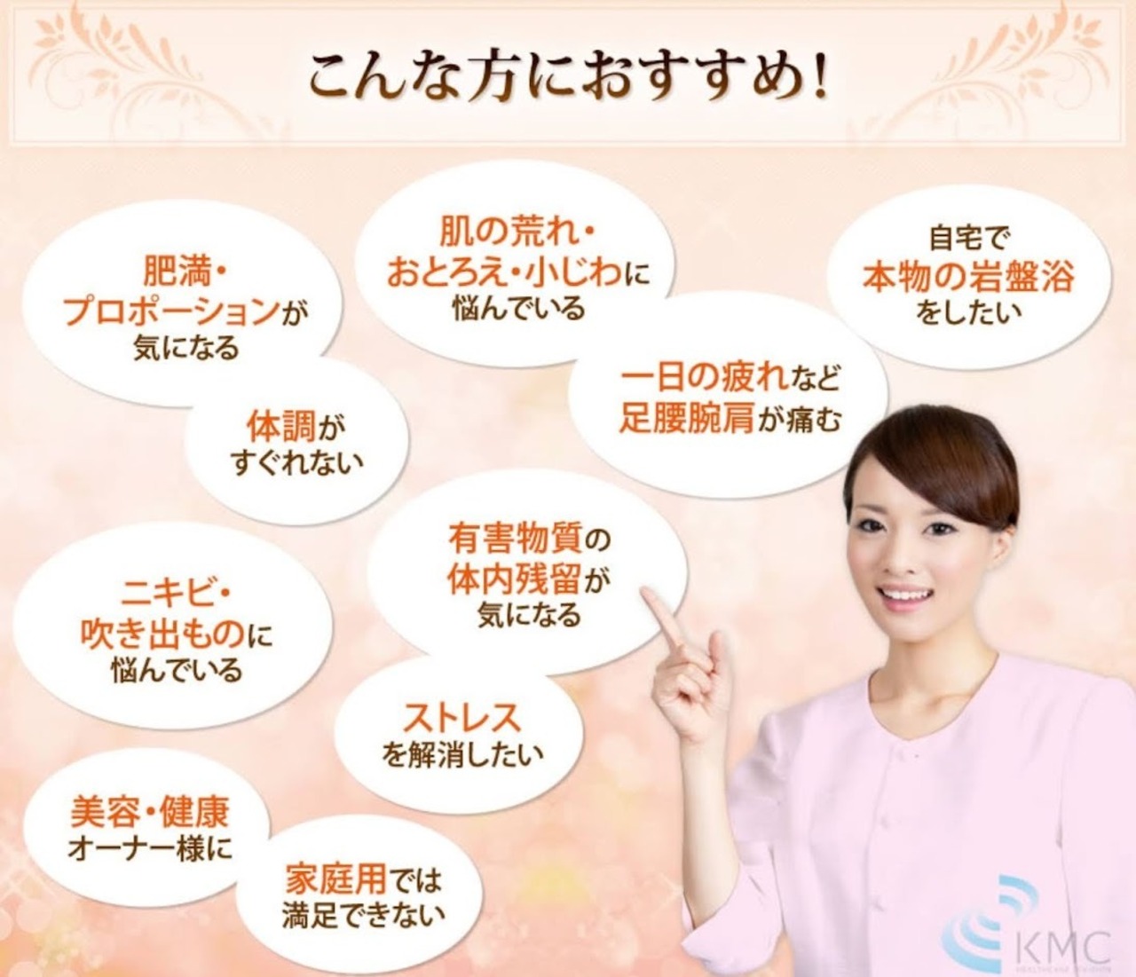 ・このコースでは、美容・健康を意識した施術を受けることができるため、